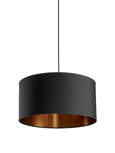 Nielsen Light Stof Pendel i sort med kobber indersideFantastisk populær og vældig fin lampeskærm med sort yderlige og kobber-look inderside. Vores sort/kobber stofpendel har åben top og bund så lyset kan strømme frit ud i rummet. Ø40 cm H20 cm Sort yders (Læs mere)