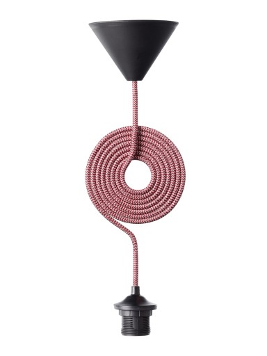 Fatningssæt E27 m/Stofledning-Sort fatning + Rød/hvid ledning