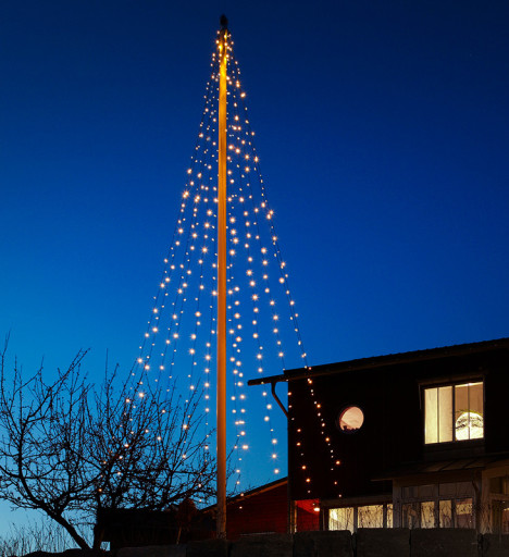 Den velkendte udgave af julelys til flagstang med lyskæder som kører fra en ring i toppen, som du så monterer fast i jorden med pløkker (medfølger). Du får, om ikke det højeste, så i hvert fald et af byens højeste juletræer på denne måde. Galax flagstangs (Læs mere)